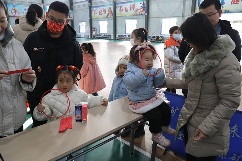 套圈竞赛,套出“欢乐年”。活动现场摆放着牙膏、肥皂、洗衣液、零食、饮料、生活用品等品种多样、大小不一的各类活动用品,职工及家属们纷纷被吸引到活动中来,无论是大人还是小朋友都积极参与,兴致勃勃,兴趣盎然。每个参与活动的人都使出看家本领,套中礼品的人们脸上乐开了花,还没套中的依然一副跃跃欲试的神情。火热的活动现场欢声笑语不断,洋溢着新春的气息,大家在参加套圈活动、共庆佳节的同时也“套中”了新春的喜悦与欢乐。