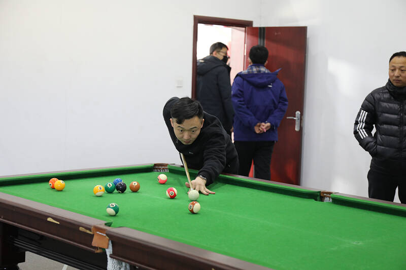 台球比赛,共度“开心年”。台球是一项有着广泛群众基础的运动项目,金鸡滩煤矿根据职工群众喜好,举办了此次台球竞技比赛。赛场上选手们充分发挥体育拼搏精神,展现高超球技,令整场比赛气氛热烈、精彩纷呈。各位选手在比赛中表现出色,认真专注,时而大力进攻一杆定乾坤,时而轻碰设防另局势扑朔迷离,紧张的比赛节奏尽显出台球运动的魅力。