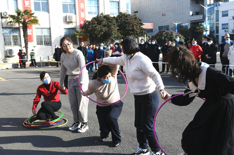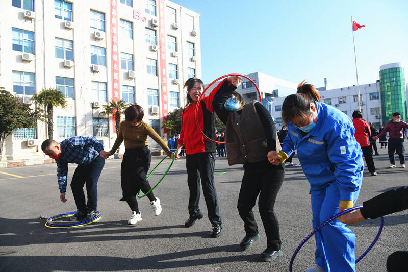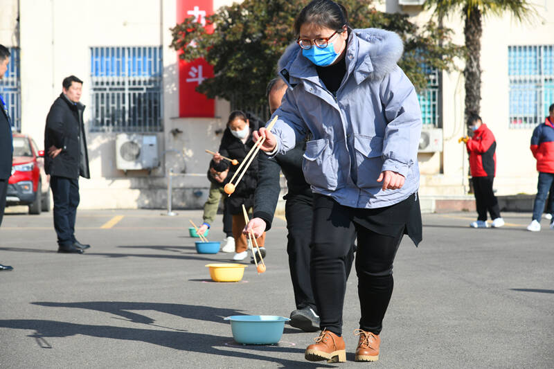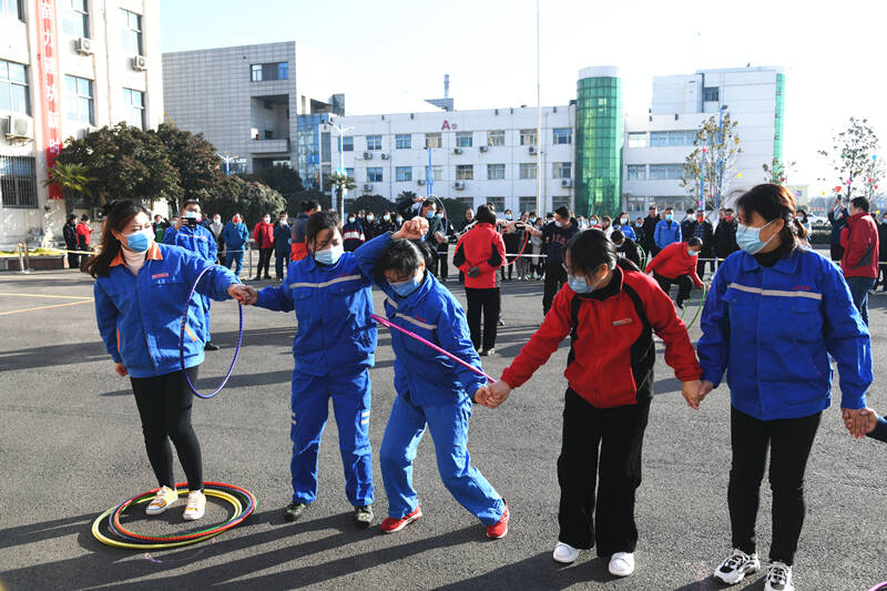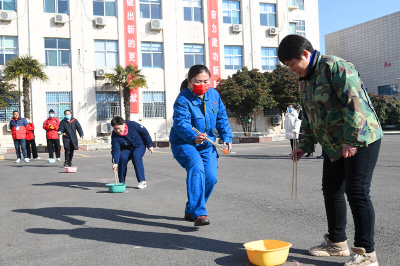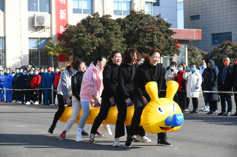 春节当天,他们举办“虎虎生威”趣味运动会。运动会将团队协作和文娱趣味融于一体,共设置环环相扣接力赛、步调一致竞技赛和十拿九稳夹球赛三个团体比赛项目。