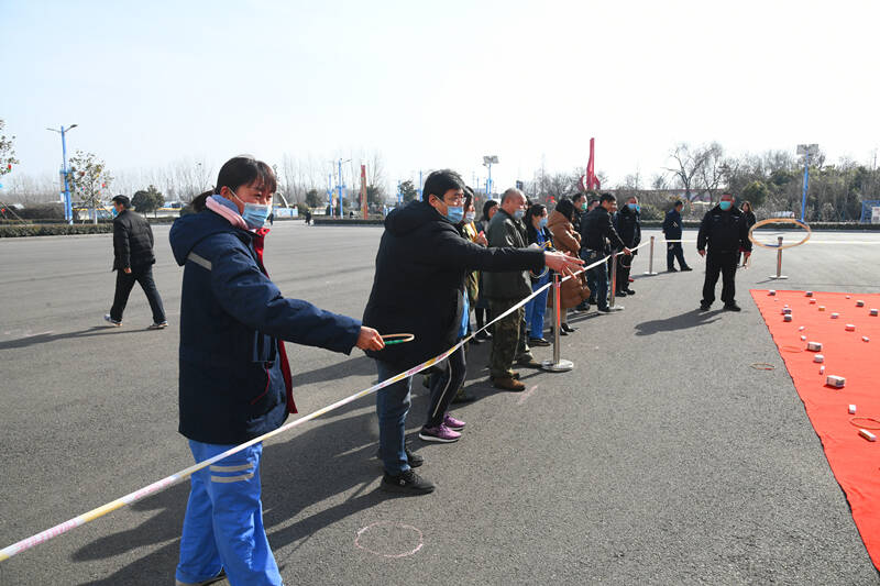 “套这个大的,套这个近点的……”大年初二下午,济二矿工广区欢声笑语不断,在“春节· 嘉年华系列文体活动”——“套牢安全·圈住幸福”套圈活动现场,大家用手中的圈在新的一年里“套”牢安全,“圈”住好运。