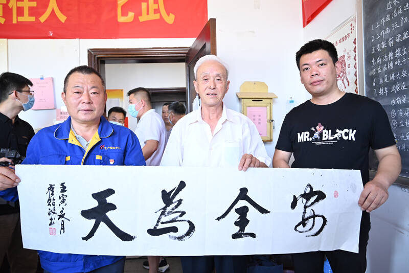 兖矿老年书画研究会相关负责人表示将会继续发挥余热,坚持为矿井的安全生产工作再做贡献。随后,他们把70余幅亲手书写的精美字画送到与会人员手上,并嘱咐他们在现场工作中,要始终围绕“遵守安全生产法 当好第一责任人”这一安全主题,树立高度的安全意识,要牢记规程,按章作业,真正将安全理念记在心上,坚定不移实现矿井安全生产。