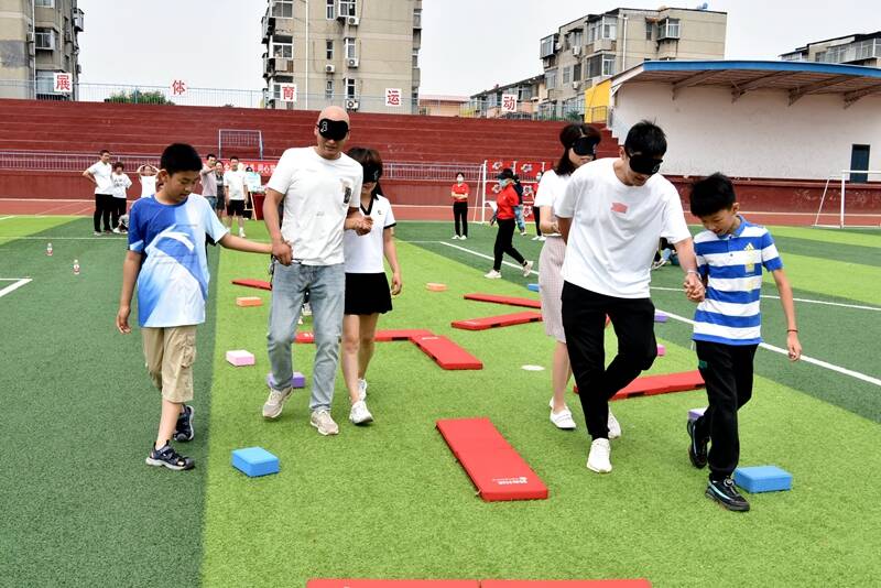 “安全舵手”角色互换游戏中,家长们蒙住眼睛,让孩子负责家长的保护监督任务,牵手过障碍物前行,成功到达目的地后,家庭成员互相拥抱,通过互换角色,让孩子更加懂得保护自己,家长更加信任孩子,提升自主安全意识。“安全启航”足球九宫格游戏中,每个家庭选派人员参加踢球,主持人对进球者提问安全知识,在“一问一答”的潜移默化中将安全融入家庭生活。在让所有家庭融入其境的“安全港湾”环节中,每人都只拥有一张船票,在船即将沉没、生命只能留给一个人的时候,通过专业咨询师的引导,增加每个人、每个家庭内心对生命的珍惜,真正将安全心智模式重塑。