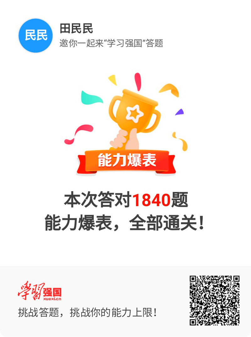 “本次答对1840题,能力爆表,全部通关!”近日,营盘壕煤矿田民民在“学习强国”挑战答题中顺利通关,用时2小时17分钟,平均每道题用时4.5秒。