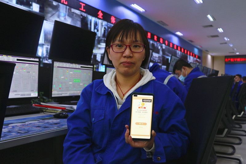 乔宏是该公司空分车间工艺甲班控制室操作工,从事空分系统操作已经15个年头。她平时热爱学习,专业知识扎实过硬,可以熟练操作一、二期4套空分系统。虽然自己不是党员,但自与“学习强国”相识以来,乔宏力争每天学习积分都拿满分。乔宏2020年度积分高达17000多分,稳居车间年度总积分第一名。8岁的女儿在家写作业或阅读时,乔宏从来不看电视,也不玩手机,就坐在女儿旁边攻关挑战答题。