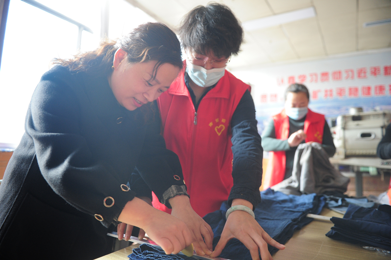 同一时间,在该矿后勤服务中心活动室里,志愿者们正分工协作,对井下职工需要缝补再利用的衣物进行分类,再根据需要进行修补破洞、缝补衣扣等等,她们不计较煤灰、不介意汗味儿,仔细对待每一件需要缝补的“作战服”。