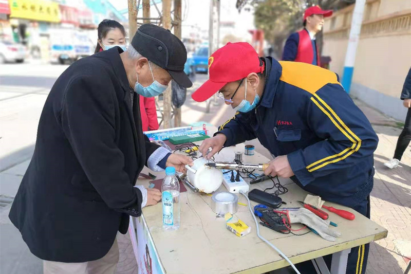 在矿家属区两个志愿者服务点上,大家统一着装、统一行动、拉好横幅、准备工器具,各司其职、各展所长,为需要帮助的职工家属提供力所能及的服务。本次服务内容共有“消防宣传”“智能手机使用、防电信诈骗咨询”“健康咨询”“小型电器设备维修”“节能环保宣传”“电焊锡焊服务”六大板块,着力解决大家生活中的小难题,为前来咨询的矿区职工家属答疑解惑、提供帮助,现场一派热闹忙碌景象。
