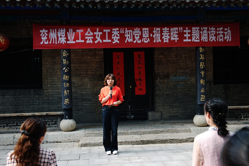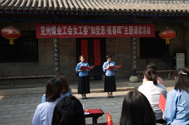 伴随着《孟母颂文》和《游子吟》的吟诵声,诵读活动在孟府赐书楼拉开帷幕。今年是中国共产党百年华诞,在党史学习教育如火如荼推进之际,兖州煤业工会女工委将母亲文化节传统教育与红色主题教育有机结合,将诵读活动分为“我的母亲”“党啊母亲”“祖国母亲”三个篇章。活动现场,身着民国风和旗袍的女工委主任、女职工代表依次上场,在传统文化氛围浓郁的孟子故里诵读经典篇章,分享红色感悟。