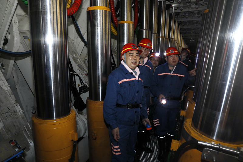会前,与会领导一同前往这个矿7304工作面实地查看工作安装情况和相关设备的应用情况。