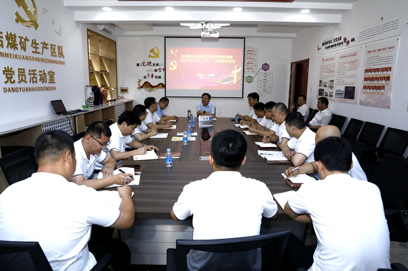 7月7日下午,兖州煤业总工程师王春耀到鲍店矿综采二区讲授专题党课,宣讲习近平总书记“七一”重要讲话精神。