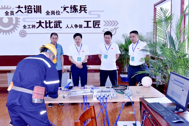 比武现场,参赛选手劳动防护用品穿戴整齐,配备工具齐全,严格按照岗位操作要求,剥线、连接、设置参数、测试故障,动作娴熟,流程规范,根据平时掌握的技能,从监控分站到甲烷传感器,标校试断,快速精准排除故障,做到了“快、准、好”,充分展示了高超的技能水平和工匠精神,赛出了风格、赛出了水平、赛出了友谊。裁判人员严格遵守比武规定和工作纪律,全过程对每名选手的操作步骤、操作用时、完成效果进行评判,做真、做细、做实监督评判工作,确保了技能比武公开、公平、公正。