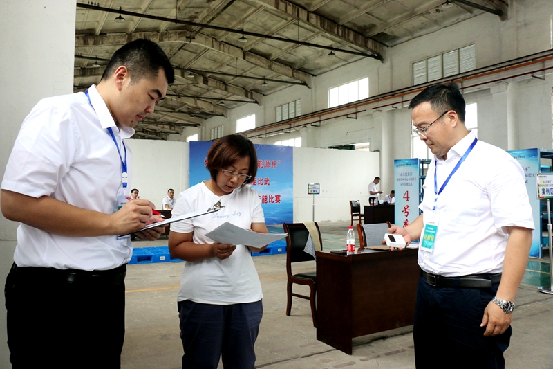 7月17日上午7点50分,煤业公司“山东能源杯”首届职工岗位技能比武仓库保管员操作技能比赛在物供中心仓储配送中心开幕。来自煤业公司的12名优秀选手参加比赛。煤业公司人力资源服务中心相关负责人到比武现场进行督导。