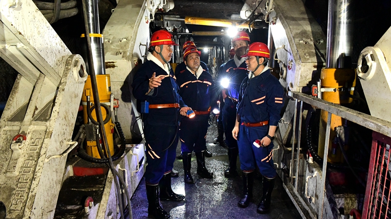 肖耀猛深入到井下123上01工作面详细了解安全生产情况,对矿井安全生产标准化、煤矿智能化建设、现场安全管理情况等进行检查。