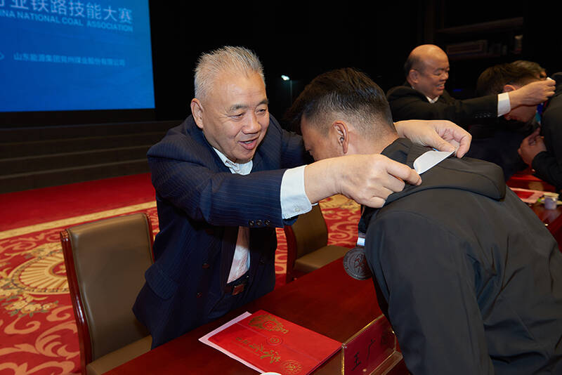 经过为期两天的紧张角逐,依据竞赛总成绩,兖州煤业股份有限公司铁路运输处、晋能控股装备制造集团有限公司铁路运输分公司等2家单位荣获团体金奖;兖州煤业股份有限公司铁路运输处孟祥柱、晋能控股装备制造集团有限公司铁路运输分公司郭东、晋能控股装备制造集团有限公司铁路运输分公司陈军等3位选手获得个人综合一等奖;兖州煤业股份有限公司铁路运输处孔森、陕西彬长矿业集团有限公司铁路运输分公司王健、淮北矿业股份有限公司铁路运输处尉敬斌、辽宁铁法煤业(集团)有限责任公司铁路运输部付世凯、黑龙江龙煤双鸭山矿业责任有限公司铁路运输部张雁鹏等多位选手分别获得理论考试和手信号、观距、观速、摘接风管、车辆检查等实操考试项目第一名的好成绩。依据竞赛奖项设置,大会依次为优秀裁判员颁奖。“2021年全国煤炭行业铁路技能大赛特别贡献奖”授予兖州煤业股份有限公司铁路运输处。
