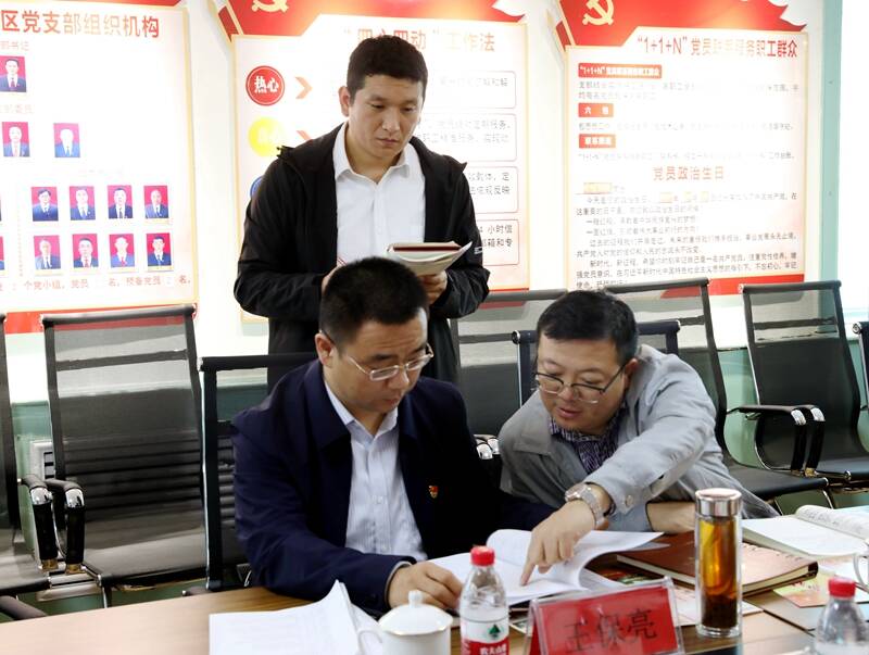 检查组听取了该矿党建工作情况汇报,共同观看《采掘特战先锋》过硬党支部建设纪实片。对照“六个过硬”建设标准,检查了该矿掘进二区党支部“三会一课”记录、主题党日活动记录、党费收缴记录等党建资料和党支部活动阵地建设情况,对该矿迎检筹备工作提出了指导性意见和建议。