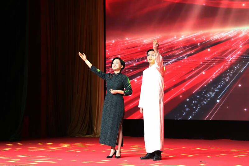 演出结束后,岳宝德等领导为兖州煤业各单位女工委赠送了党史学习教育书籍,并上台与演职人员一一握手,祝贺演出成功。