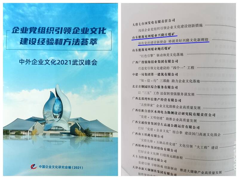 近日,在“中外企业文化2021武汉峰会”上传来喜讯,兴隆庄矿创新课题《担负党的建设新使命 铸就美好兴隆文化新辉煌》入编《企业党组织引领企业文化建设经验和方法荟萃》一书,受到与会专家和学者的高度认可和一致好评。据悉,这是全国煤炭行业获此殊荣的为数不多的单位之一。