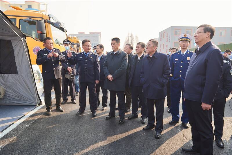 汲斌昌还通过调度大屏幕观看了济宁市基层应急救援能力建设宣传片、观摩救援中心山体滑坡、井下火灾事故、井下冒顶事故实战演练,室外观摩五个应急救援中心展板、省矿山和地质灾害应急救援中心应急装备。