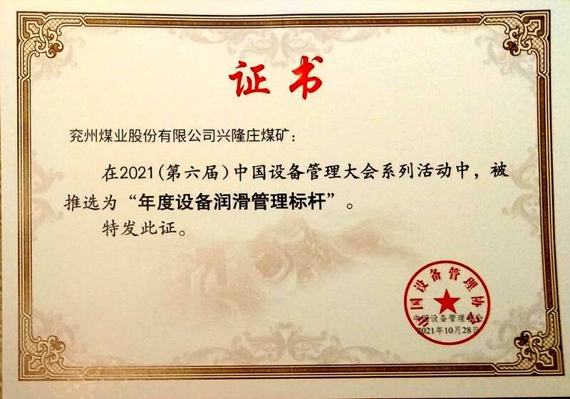 12月22日-23日,在济南市召开的2021(第六届)中国设备管理大会上传来喜讯,兴隆庄矿被评为“2021年度全国设备润滑管理标杆单位”。这是该矿自荣获“2019年度全国设备管理和技术创新标杆企业”荣誉称号以来在设备管理领域取得的又一殊荣,同时也成为全国煤炭行业唯一获此荣誉的煤矿。