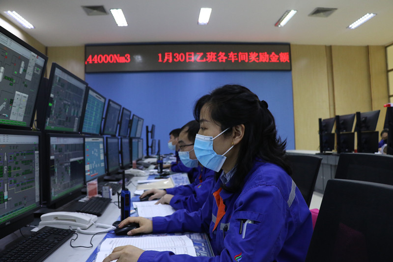 “日常操作时,加强气化炉、锁斗等重点设备以及重要组分、指标的监控,勤调、微调、稳调,以保证系统稳定运行,最大限度的降低各类消耗。”气化车间控制室岗长李慧萍说道。