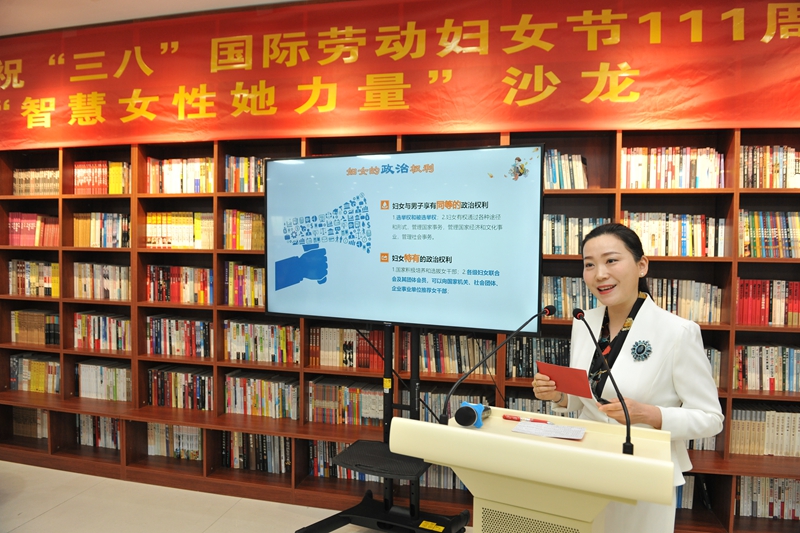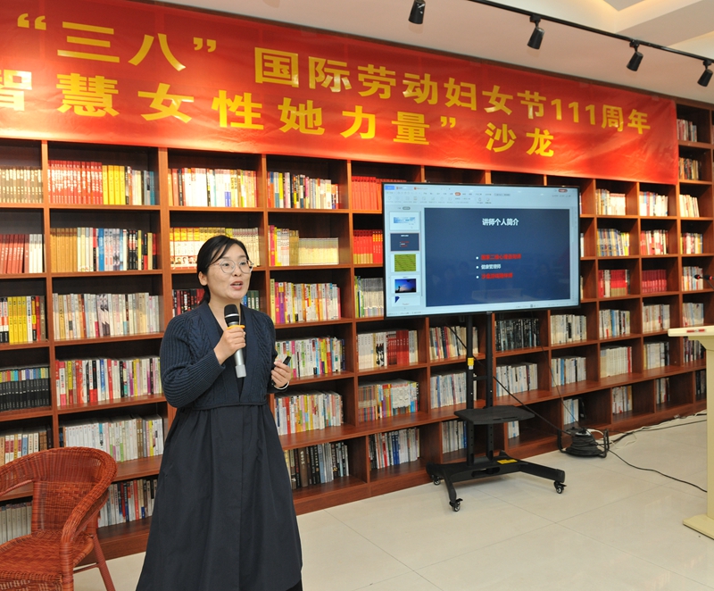 在沙龙活动中,针对社会存在的职场性别歧视、生活暴力压迫等问题,大家围绕妇女权益保护及维权途径,共同学习《中华人民共和国妇女权益保障法》,通过播放新闻视频,了解《山东省女职工劳动保护办法》,鼓励女职工用法律知识维护女性拥有的相关权益。