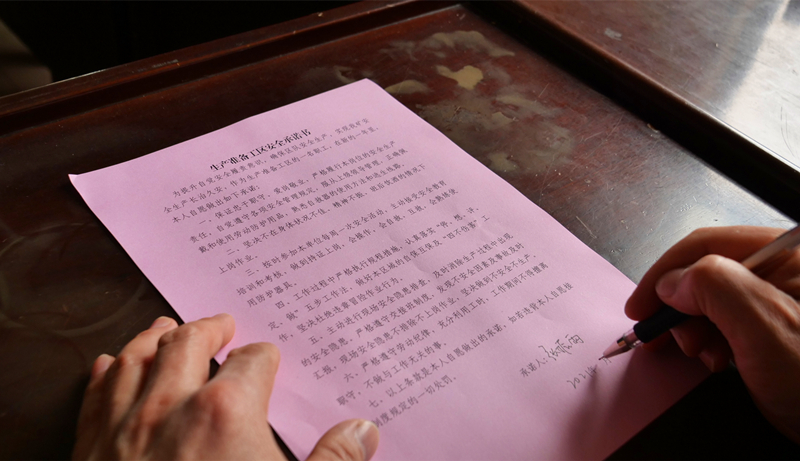 “这白纸黑字签过的安全承诺书,操作过程中一定会时刻提醒自己。”签完安全承诺书后,该工区职工韩金木意味深长地说道。