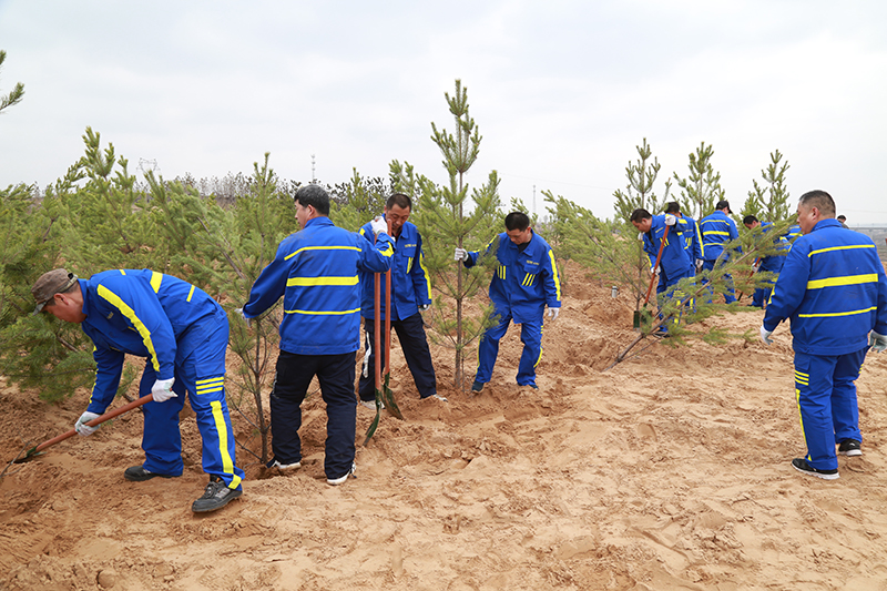 在植树现场,参加义务劳动的干部职工两人一组,互相配合,挖坑、扶苗、填土、踩实、浇水,一道道工序一丝不苟,现场一派热火朝天的劳动景象。经过一天的忙碌,400棵优质樟子松横成行竖成列整齐排列,为矿区又增添一片新绿。今年以来,该矿加快绿色矿山建设步伐,统筹规划矿区绿化,计划采购各种树木13000余棵,分别在进矿道路两侧及矿区边坡进行绿化种植,目前已陆续进场种植各种树木3000余棵。