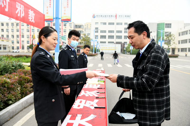 活动中,通过悬挂横幅、图片、板报展示、设立咨询台、发放宣传单、签字承诺等多种形式,向广大干部职工群众普及邪教的基本特征、邪教识别方法、邪教的罪恶手段等常识,教育引导群众认清邪教危害,识别邪教特征,抵御邪教侵蚀,进一步倡导居民反对邪教、破除迷信、崇尚科学、传播文明,科学健康生活。