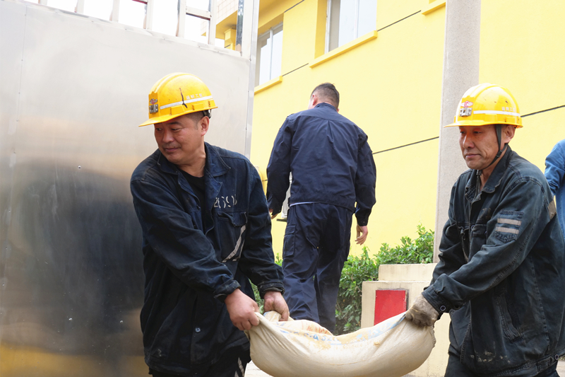 8点10分,该矿防洪警报鸣响,地面防洪应急演练启动。来自全矿专兼职防洪队的200余名抢险队员及抢险车辆、救护人员,第一时间到达指定地点,迅速集合完毕,整装待命。接到抢险命令后,抢险队员带好抢险工具立即奔赴该矿110kV变电所和副井口等要害部位,迅速用沙袋筑起了防洪墙。
