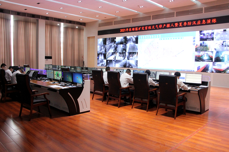 5月15日,东滩矿举行2021年灾害性天气停产撤人暨夏季防汛演练,全面检验矿井灾害性天气抢险救灾、避险的能力。