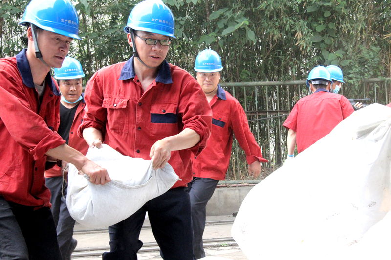 12时40分,值班调度员接到副井、西风井、35kV变电所受到洪水威胁的报告,矿长随即命令迅速启动《夏季防汛应急预案》,立即拉响防洪警报,开启防洪泵,组织抢险队实施抢险。随后,全矿13支防汛抢险队伍、6辆防洪车辆迅速集结到位。8支抢险队分别到副井口、35KV变电所、西风井等地,按汛期防洪要求对副井井口,西风井井口,35KV变电所南北门口采取有效的防堵措施,防止洪水进入,13时12分,各抢险小组完成抢险任务。13时42分,井下所有人员全部安全升井,撤人演习圆满结束。