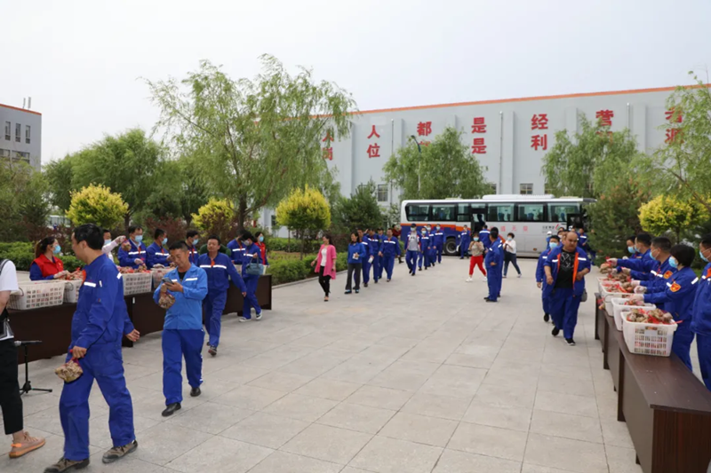 早上7点,该公司班子成员在职工食堂分列两排,为端午节坚守岗位的职工送上热乎乎的粽子和鸡蛋,并送上一声安全叮嘱。