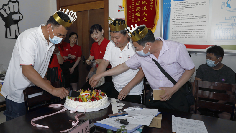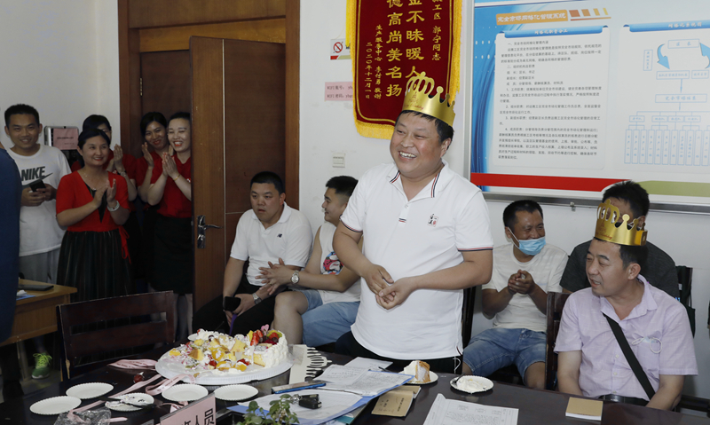 “6月是安全生产月,也是我矿建成投产35周年,今天我们为三名职工过生日,矿工会女工委为他们送来了生日蛋糕和解暑西瓜,让我们一起唱起《生日歌》,为他们祝福……”6月16日上午,鲍店矿运搬工区会议室里欢声笑语,正在举办一场别开生面的“生日会”。
