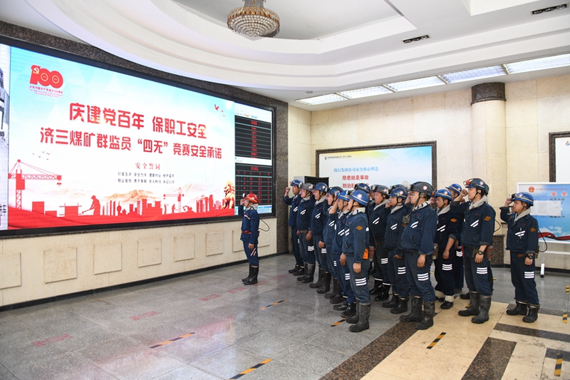 6月18日,济三矿工会组织群监员在井口进行“庆建党百年 保职工安全”安全承诺活动,来自生产一线的30余名群监员郑重地举起右手庄严宣誓,承诺保证坚决履行群监员职责,努力做到群监员身边无“三违”。一句句安全宣誓词,句句铿锵有力,字字掷地有声,群监员纷纷表示严守安全规章,严格安全执法,坚决做到个人无违章,身边无三违,现场无隐患,班组无事故,做一名合格的安全卫士。