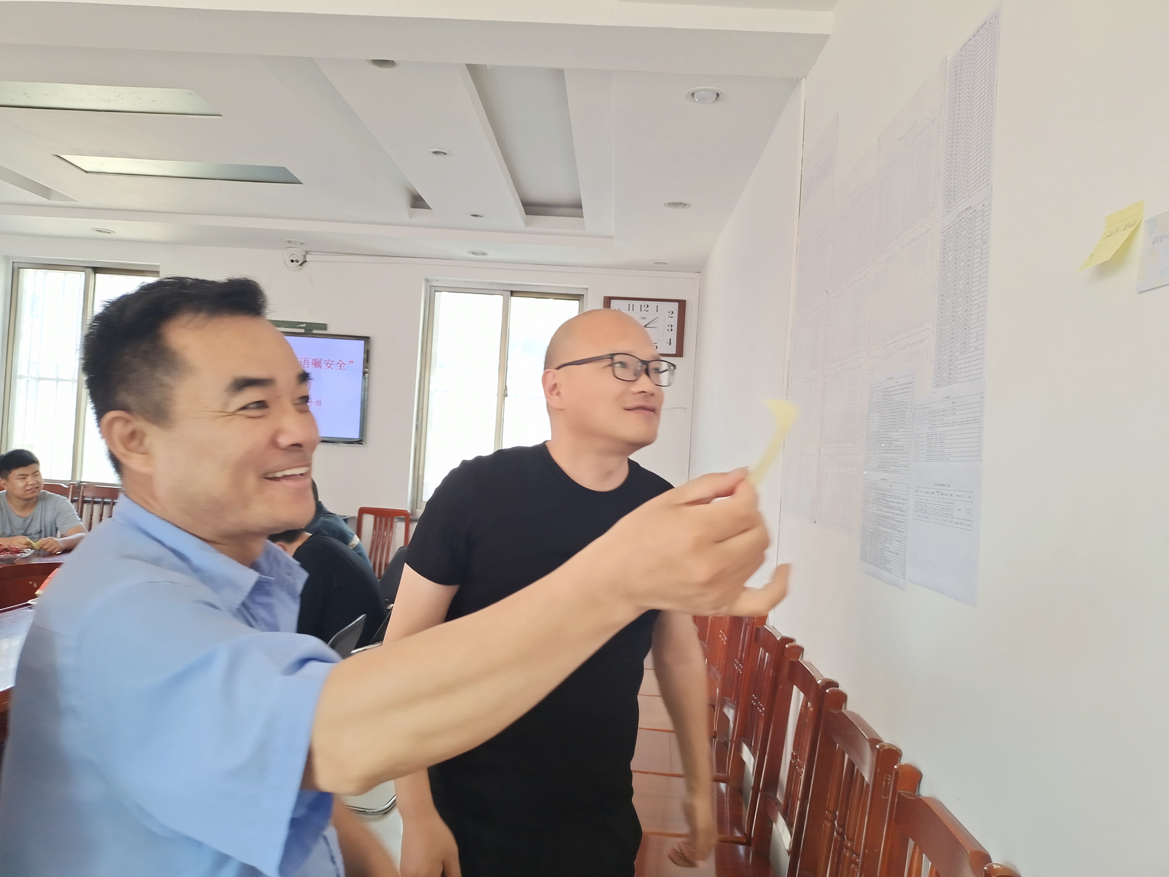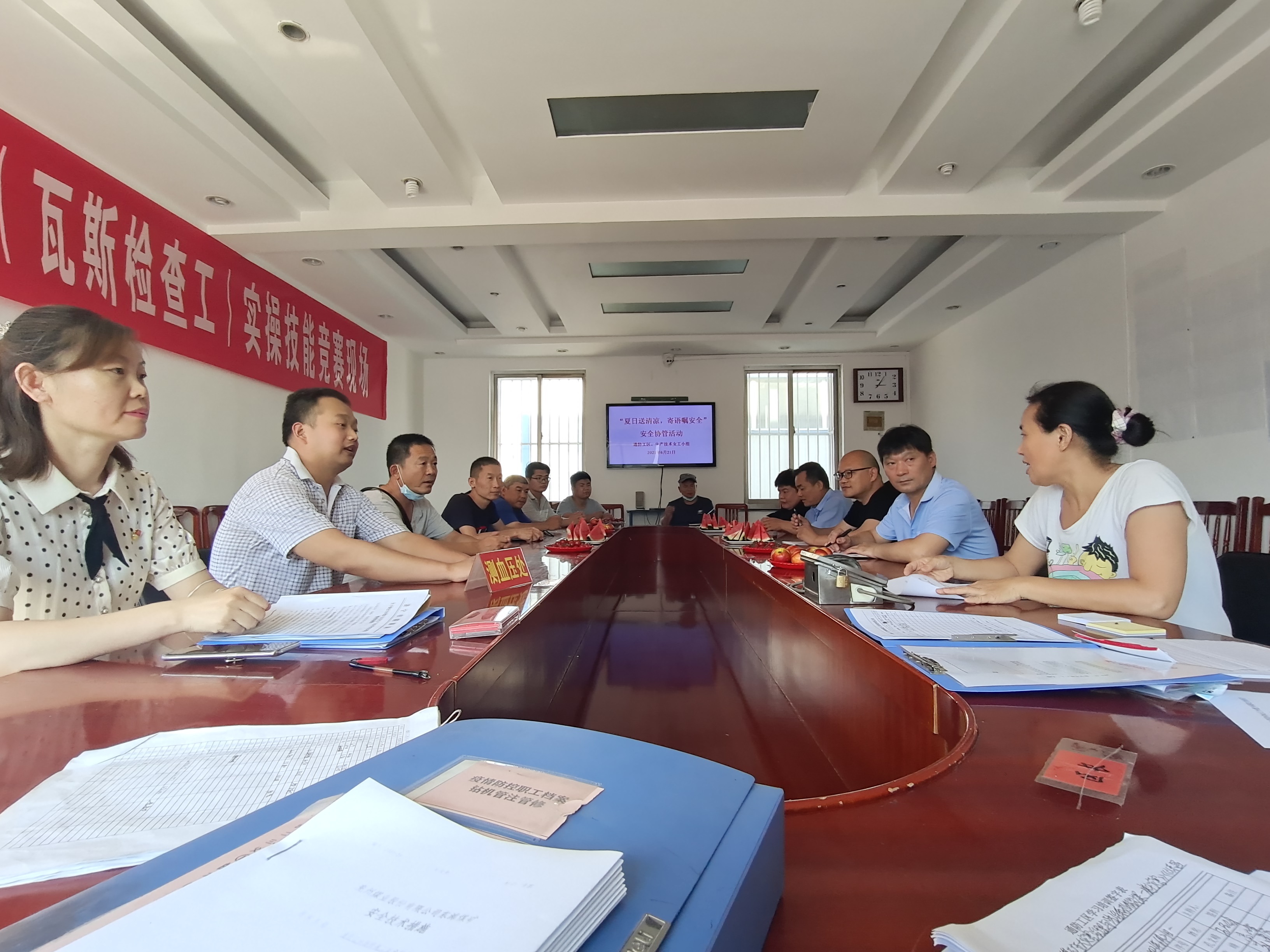 炎炎夏日,在东滩矿通防工区会议室,贴满墙的“便利贴”勾起一道美丽的风景,“夏日送清凉、寄语嘱安全”安全协管活动如期在这里举行。