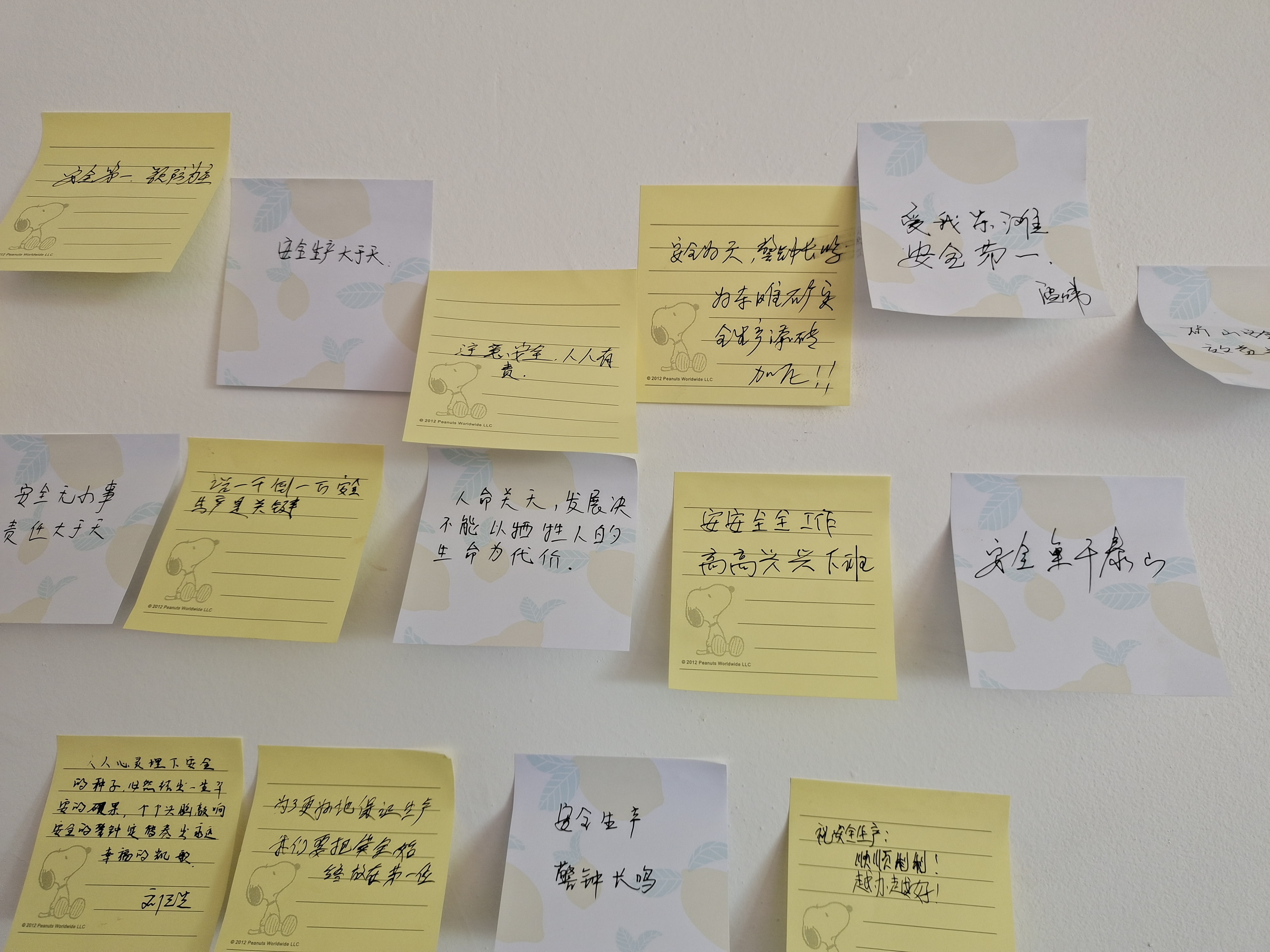 “一句句真诚的祝福,一张张便利贴,密密麻麻的写满安全寄语,这承载着大家对安全的期盼,让职工筑起安全思想防护墙。”该矿女工协管员李娟介绍了开展活动的初衷。