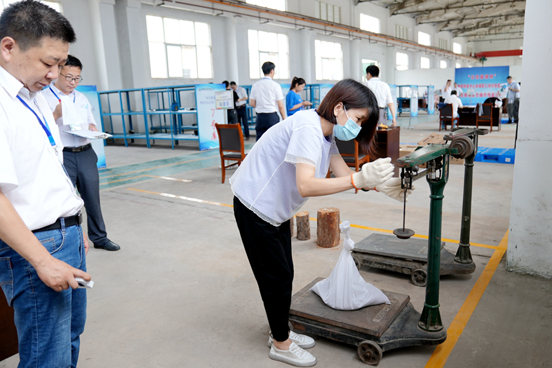 此次操作技能比赛共设置两个考场,采取现场抽签的形式,排出参赛人员考试顺序。选手须在限定时间内依次完成标志识别、现场识货、计量器具的使用、物资堆码摆放、消防器材演练和案例分析六个环节的考试。所有考题均以临时抽题签的方式确定。