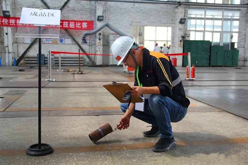 此次电焊工比武考核的是钢管对接水平固定焊项目,选手们个个“全副武装”,手持焊枪、头戴防护罩,时而侧蹲、时而俯身。比武现场弧光闪烁,焊花飞溅,焊机隆隆的轰鸣声和飞溅的焊花,考验着每一位参赛选手。他们一丝不苟、沉着应对,熟练、精准的进行操作,充分展示了铁运处电焊工的扎实基本功和高超技艺。每一名选手操作完成后,评委现场按照安全保护、工艺质量、操作程序、比赛时间等标准进行综合评比,确保比武公平公正、公开透明。