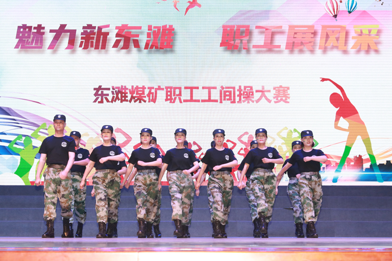 “‘魅力新东滩·职工展风采’东滩煤矿首届工间操大赛现在正式开始,首先上场的一号参赛队是‘四有娘家人’队,由10名优秀志愿者组成,他们经常活跃在夏日送清凉、节日送祝福以及矿井的各类大型活动中,请欣赏他们带来的《动感串烧》”……13支代表队依次出场亮相,他们服装整齐、仪表端庄,精神饱满、斗志昂扬。