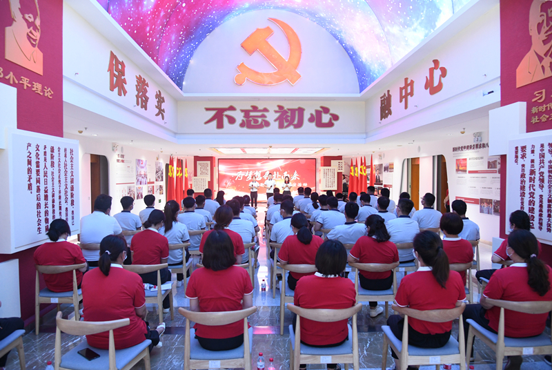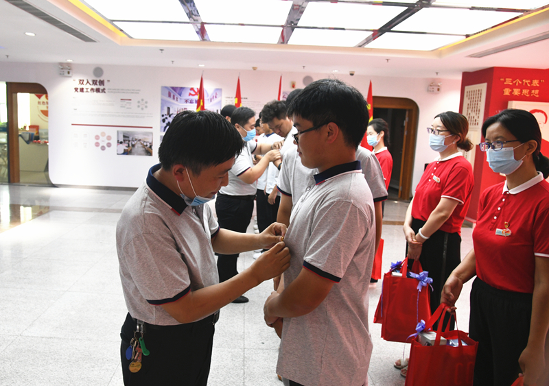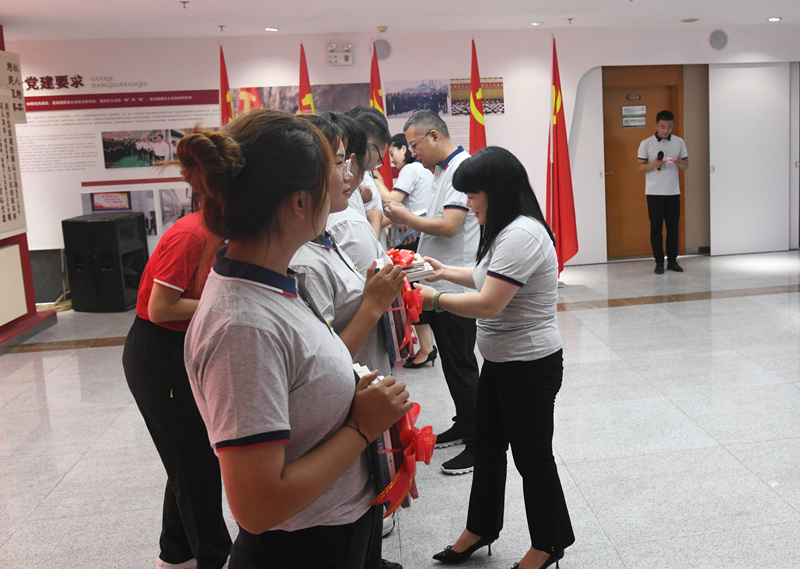 临近尾声,活动开启了一场特殊的仪式——为新入职职工佩戴团徽、赠送“暖心大礼包”,包括《初心》《为什么出发》《工匠精神》等书籍,在美妙的旋律中大家集体合影留念。