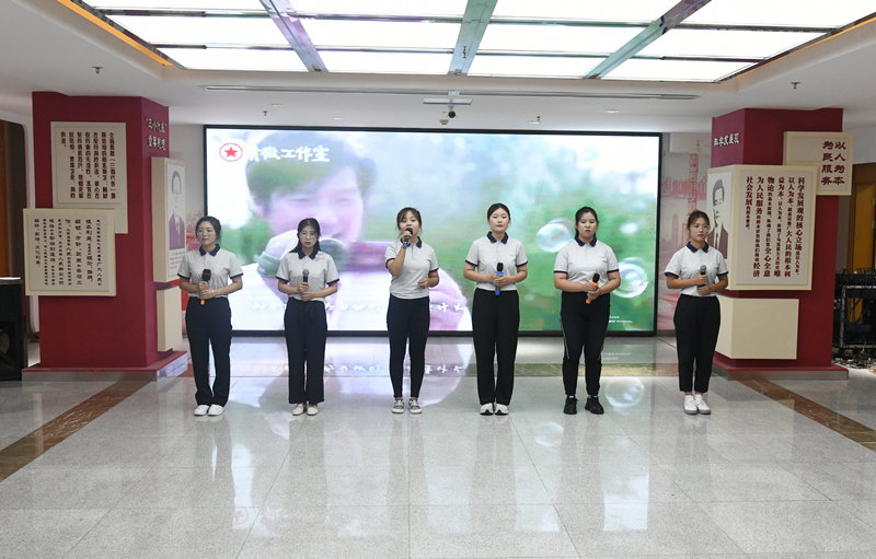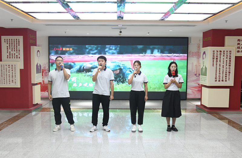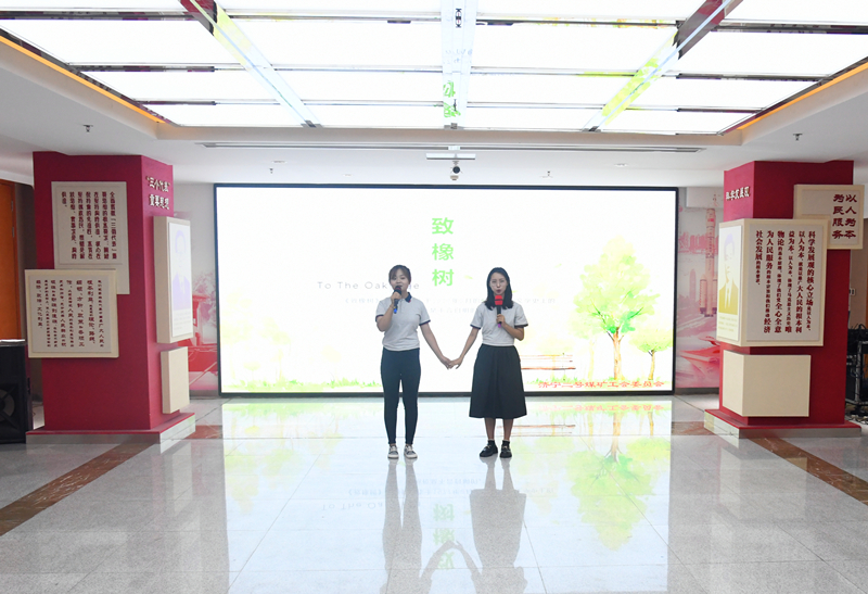 当现场都还沉浸在《那些人儿》的甜美合唱中,一首《少年锦时》将大家又拉回到了青春的时代,曾经的期待、追逐都涌上心头。紧接着缓缓入耳的是一首优美、深沉的朗诵——《致橡树》,新入职大学生们深情地表达着他们内心深处的爱与美。