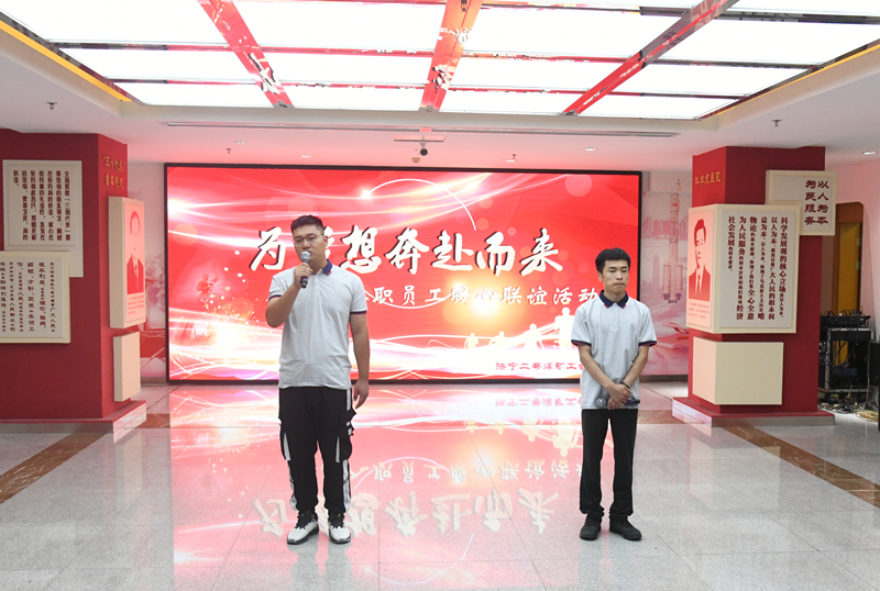 新入职大学生们用自己的声音向大家传输着属于他们的符号,暖心志愿者们同样也用他们自己的方式为新职工们答疑解惑。大屏幕上播放着“学长”的励志经历——《让青春在党旗下绽放》,用最直观最贴近心灵的方式为新职工们拨开迷雾,打消担忧。选煤中心大学生创新团队的两位青年代表也来到现场,他们讲述了自己与济二的点滴过往,为新入职大学生们打气勉励。