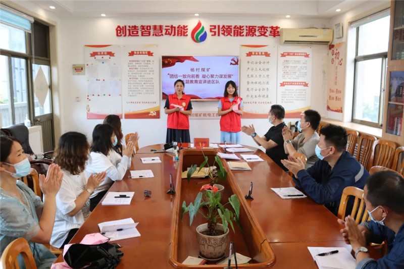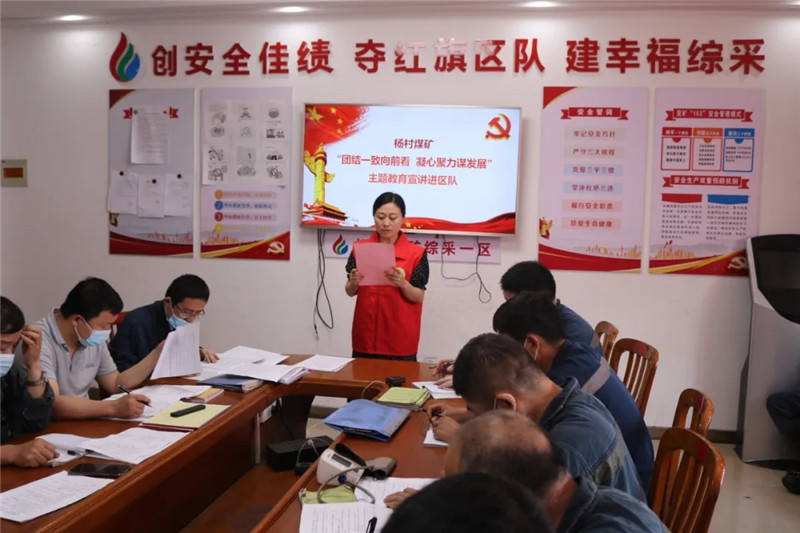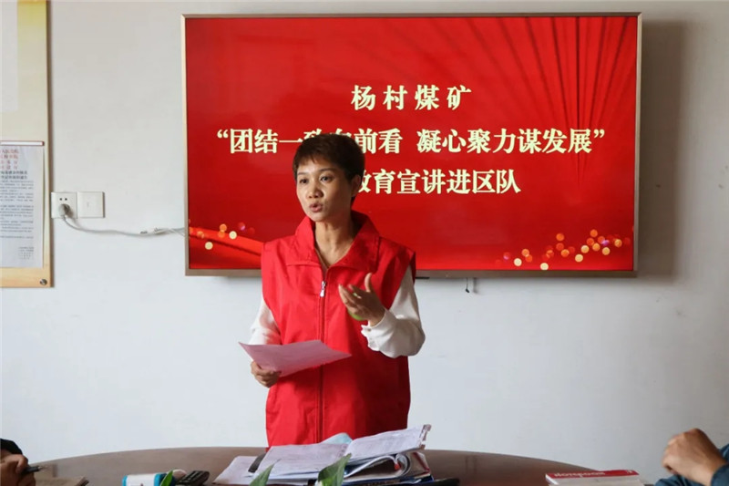 近日,杨村矿组织“百灵“宣讲队深入采掘辅助区队开展“团结一致向前看、凝心聚力谋发展“主题教育宣讲活动,动员广大干部职工进一步统一思想、凝聚共识,激发奋进动力,用实际行动不折不扣地完成矿井各项任务指标。