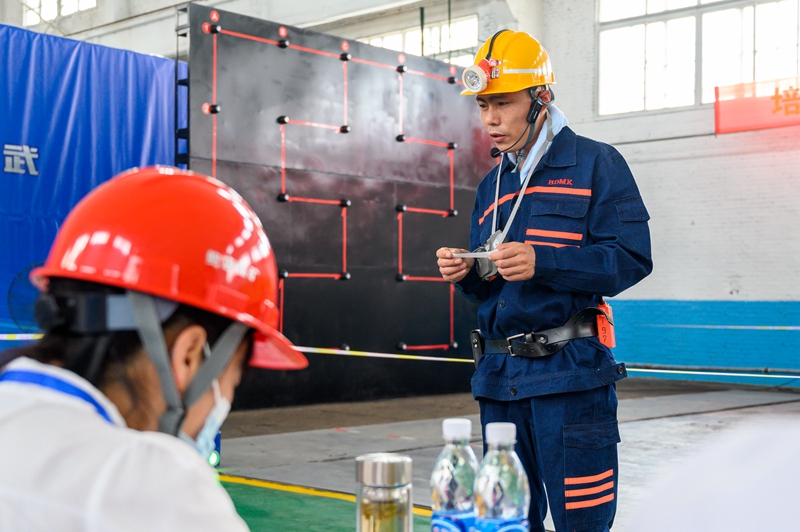 此次综掘机司机技能操作比武为期两天,分为技能实操和理论考试两个部分。技能实操由参赛选手抽签决定比赛顺序,采用模拟井下现场实际操作的方式,要求选手按照给定的技术要求,在规定时间内完成问题简答以及掘进机开机前的检查、启动、运行、截割、停机等作业流程和技术动作,全面检验参赛选手实际操作和现场应变能力。理论考试采取电脑上机考试的方式,进一步考验基础知识掌握情况。