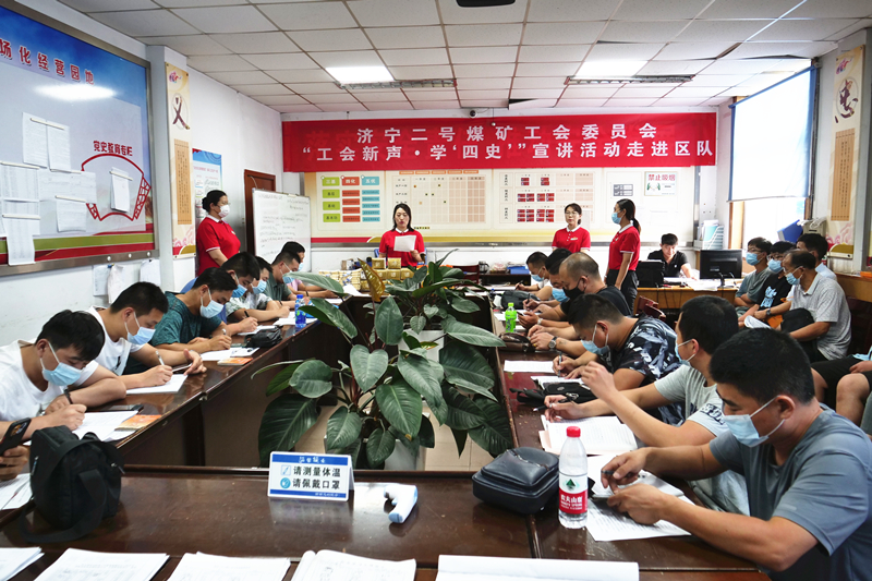 8月19日,济二矿工会开展新《安全生产法》宣讲进区队活动。