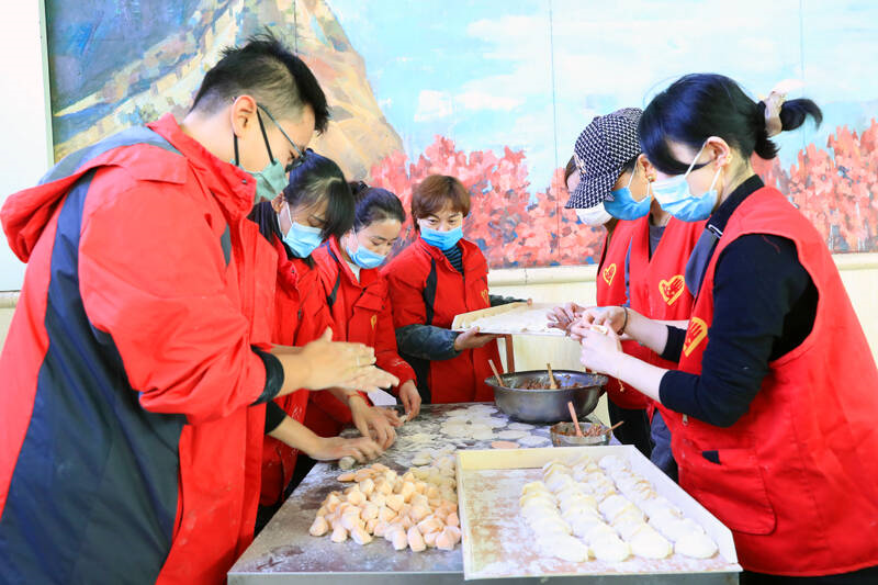 活动前一天,协管员们一起包水饺,她们分工协作,有人和面,有人拌馅,有人擀皮,有人包褶,大家配合默契,得知要给一线职工送去“平安饺子”,心里美滋滋的:“我们要让矿工兄弟们尝到冬至的第一碗水饺!”