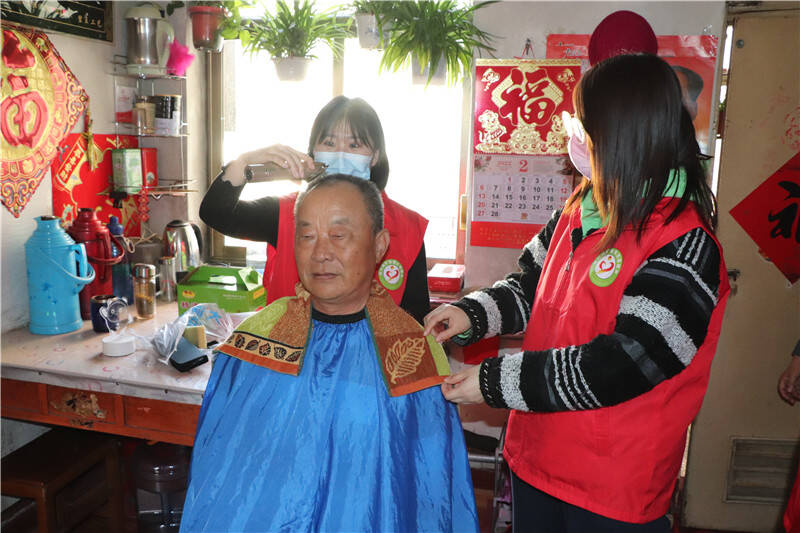 在困难职工家中,志愿者们送去慰问品,给他们理发、测血压、打扫卫生、收拾杂物;与他们亲切拉家常,了解他们的生活和身体状况,普及健康知识,叮嘱他们多保重身体,有困难随时联系志愿者。
