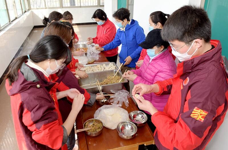 当日一大早,志愿者们来到岗山家属社区,现场为老人义务剪发,现场制作饺子皮、饺子馅,与离退休老人一起包饺子,吃水饺。当大家把热乎乎的水饺端到老人们手中时,老人们脸上流露出满满的喜悦和欣慰,志愿者们脸上都洋溢着灿烂的笑容。
