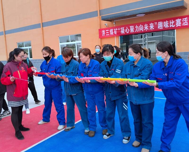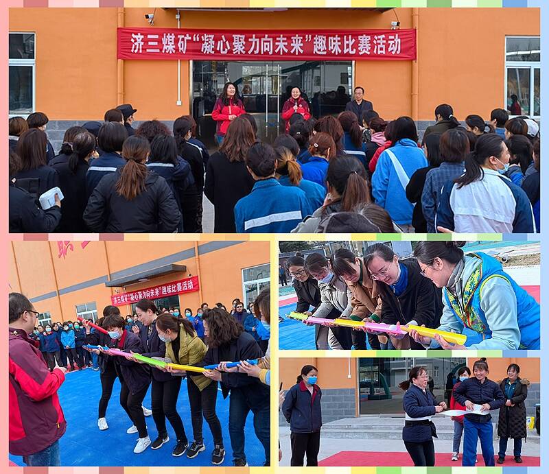 3月4日,在“三八”国际劳动妇女节来临之际,济三矿开展“凝心聚力向未来”趣味文体活动。各车间工会的200余名女职工齐聚矿职工健身篮球场,共同参加了丰富多彩的文体活动。