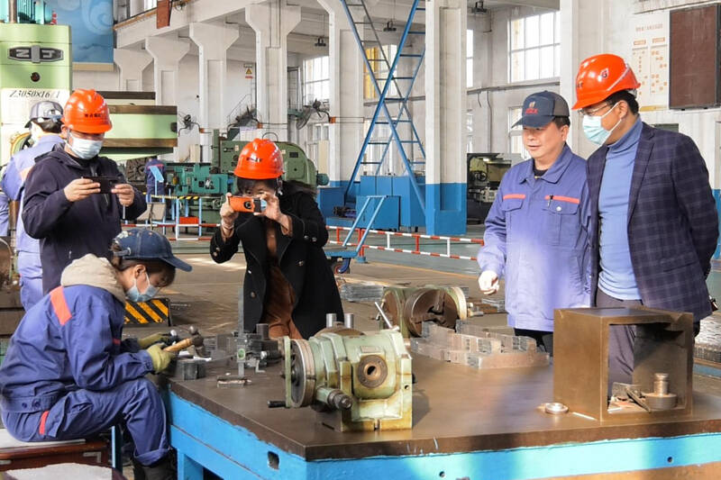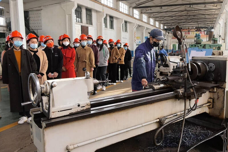 女工观摩学习团队先后来到生产服务中心机修厂车工、钻床钳工、机修工、铆焊车间等工作区域观摩学习,在该中心解说人员引导下,近距离领略了各工种岗位女职工的辛勤操作和技艺风采。