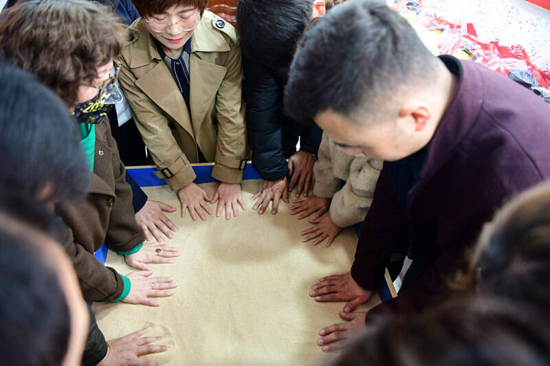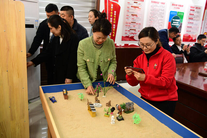 “大家把双手放入沙盘,闭上眼睛,静静感受蓝天白云……”“暖阳阳”志愿者组织开展互动体验,心理解压、精神解缚,让各个家庭挑选钟意的物品放入沙盘,沉浸在营造“家”的氛围之中,